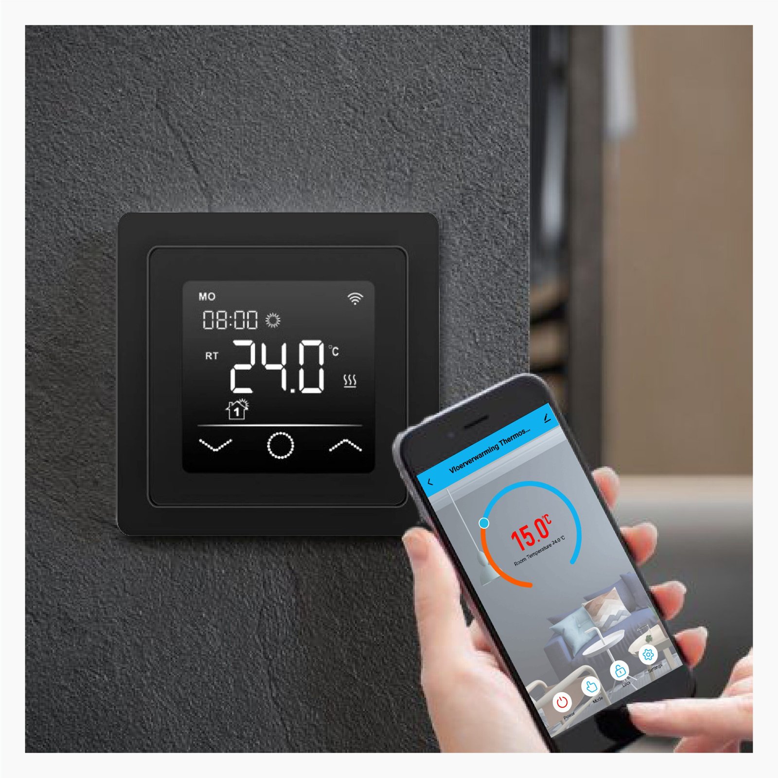 De Helios 660-WiFi is een bijzondere WiFi thermostaat met een groot kleuren LCD scherm, uiterst nauwkeurige temperatuur regeling -0,5°C, gratis WiFi APP (Tuya) en de mogelijkheid te koppelen met Amazon Alexa en Google Home en speciaal ontwikkeld om wereldwijd elektrische vloerverwarming te bedienen en zuiniger en efficiënter te laten werken!